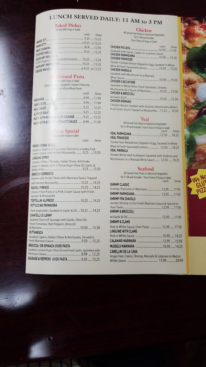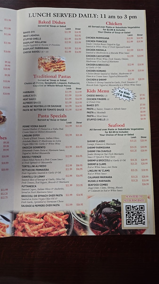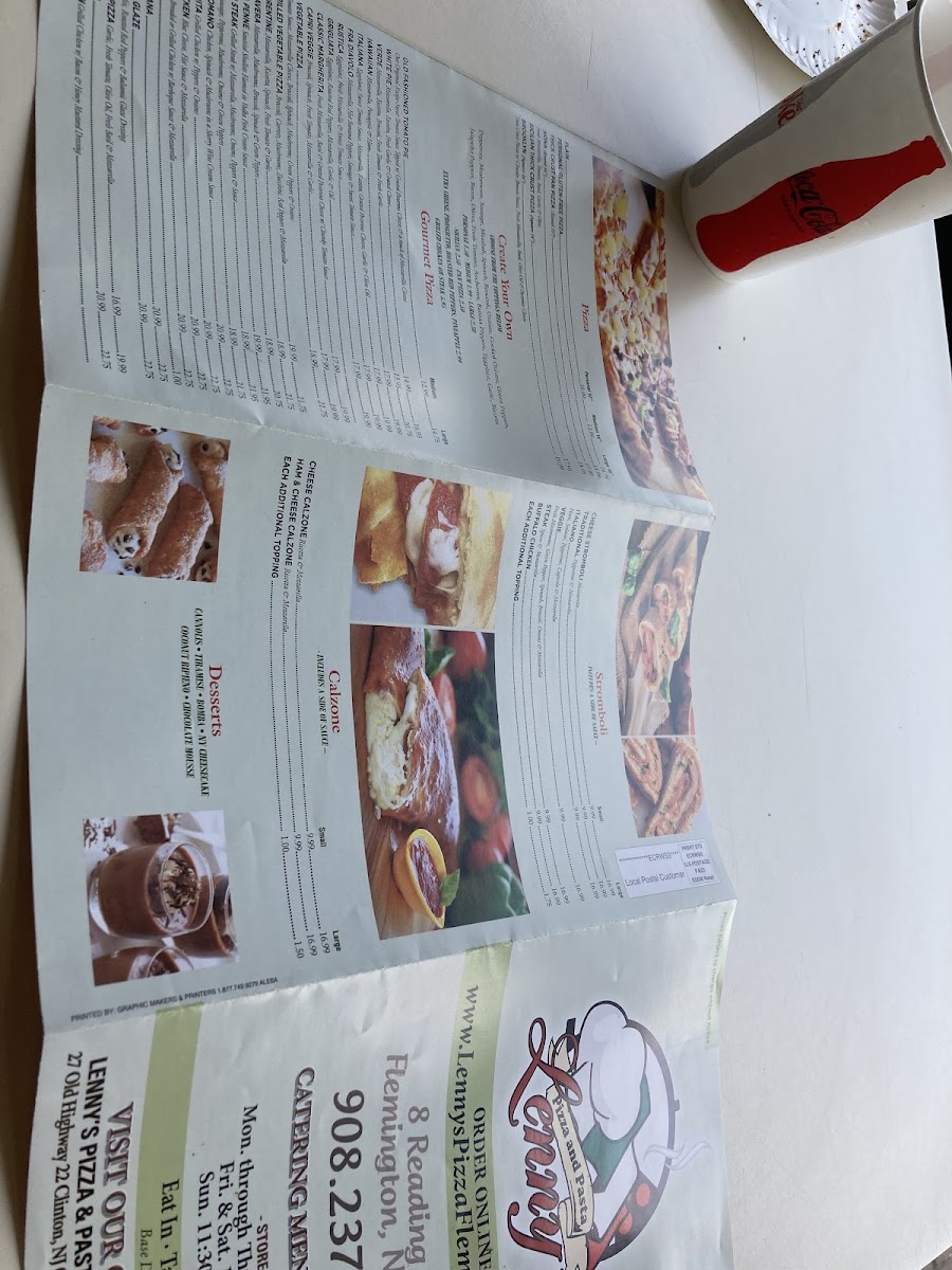 From a reviewer’s perspective, the menu at Lenny’s Pizza offers an impressively wide selection that goes far beyond standard pizzeria fare, making it easy to find something for any craving. The appetizers like Fried Calamari and 6 Piece Mozzarella Sticks are classic starters, while soups such as 12 Oz. Pasta Fagioli and 12 Oz. Chicken Soup provide comforting options. The pizza selection is a highlight, with choices including 16" Large Pie, 14" Medium Pie, 12" Personal Pie, and specialty options like Medium Buffalo Chicken Pie and Large Chicken Bacon Ranch. Beyond pizza, the menu features hearty subs such as #3. Italian Hoagie, Cheese Steak, and Chicken Parmigian Sub, along with strombolis like Buffalo Chicken Stromboli and wraps like California Chicken Cheesesteak Wrap. Pasta lovers can enjoy dishes like Baked Ziti, Meat Lasagne, Vodka Sauce Special, and Ravioli Firenze Special, while entrée options such as Chicken Francese and Shrimp Scampi add even more variety. The menu is rounded out with sides like French Fries, desserts such as Cannoli and Tiramisu, and drinks including 2 Liter Coke and Gold Peak Sweet tea, making the overall menu diverse, satisfying, and suitable for both quick bites and full meals.